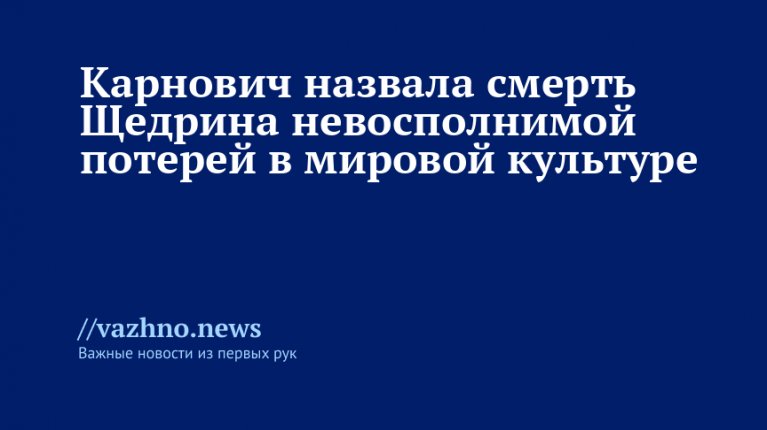 «Трудно поверить, что Родион Константинович ушел из жизни. Это огромная, невосполнимая потеря. Он был выдающимся композитором, Человеком с большой буквы, чей талант золотыми буквами вписал имя в мировую культуру, которая сейчас лишилась его», — заявила она.