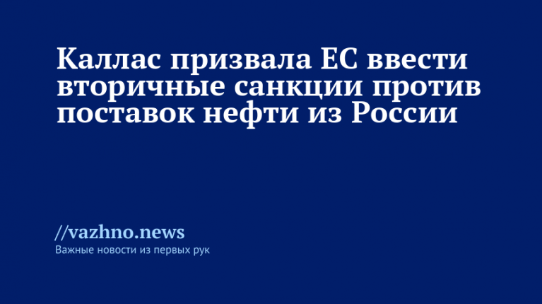 29 августа глава европейской дипломатии Кая Каллас выступила с призывом к странам Европейского союза (ЕС) о введении вторичных санкций на поставки российской нефти, которые будут похожи на ограничения, уже применённые США.