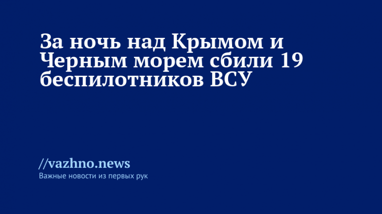 Согласно уточненным данным, 10 таких дронов были сбиты над территорией республики Крым, а еще девять — в морской зоне. Все беспилотники были уничтожены в промежутке времени с полуночи до 6 утра в пятницу.