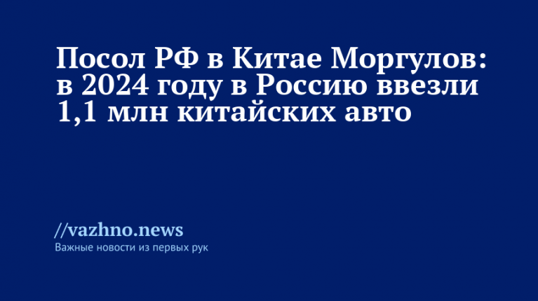 В 2024 году в Россию было импортировано 1,1 миллиона автомобилей, произведенных в Китае, на общую сумму около 21 миллиарда долларов. Об этом сообщил посол России в Китае Игорь Моргулов 29 августа.