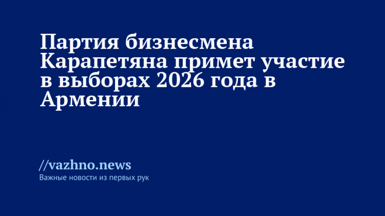Политическая партия, связанная с главой группы компаний «Ташир» Самвелом Карапетяном, планирует участвовать в парламентских выборах в Армении, назначенных на 2026 год. Об этом 29 августа сообщило «Sputnik Armenia».