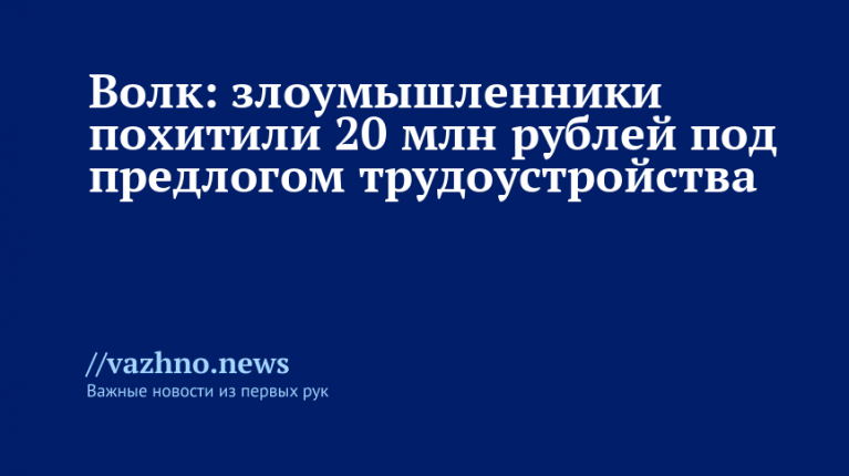 Волк: мошенники украли 20 млн рублей, обещая трудоустройство