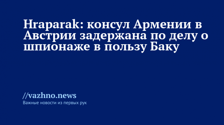 Консула Армении в Австрии Ашхен Алексанян задержали в аэропорту Еревана по подозрению в шпионаже в пользу Азербайджана. Об этом 19 августа сообщает портал Hraparak со ссылкой на инсайдеров.