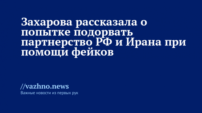 Захарова о попытке подорвать российско-иранское партнерство фейками
