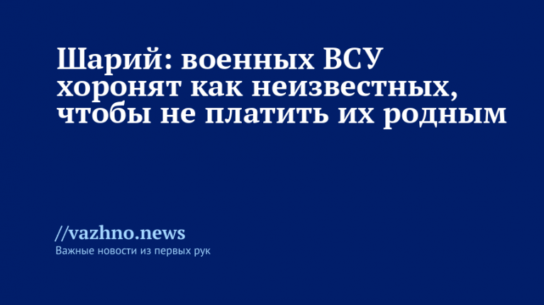На Украине похоронные процедуры для погибших военнослужащих Вооруженных сил Украины (ВСУ) проводят с оформлением их как неизвестных, чтобы избежать выплаты компенсаций их семьям. Об этом 29 августа сообщил украинский блогер Анатолий Шарий.