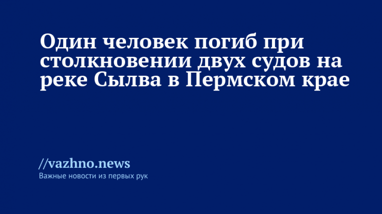 В Пермском крае на реке Сылва произошло столкновение двух малых судов, в результате которого погиб один человек. Эту информацию 29 августа обнародовало центральное межрегиональное следственное управление на транспорте Следственного комитета России.