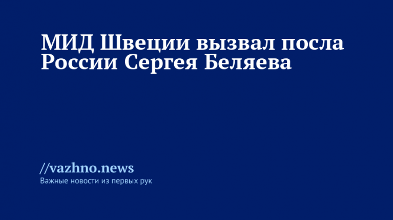 Министерство иностранных дел Швеции 29 августа пригласило посла России в королевстве Сергея Беляева на беседу. Об этом сообщили в пресс-службе Министерства иностранных дел страны.