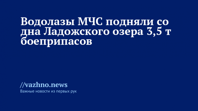 «Более 3,5 тонны боеприпасов были подняты со дна Ладожского озера специалистами МЧС России. За время проведения разминирования акватории Ладожского озера в Ленинградской области силовой группировкой МЧС России выполнено 133 спуска. Общая протяженность подводных операций превысила 140 часов», — указано в Telegram-канале МЧС.