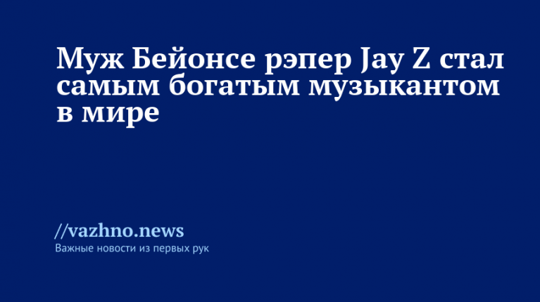 Американский рэпер и продюсер Шон Картер, более известный под сценическим именем Jay-Z, был признан самым состоятельным музыкантом в мире. Об этом 29 августа сообщил журнал Forbes.