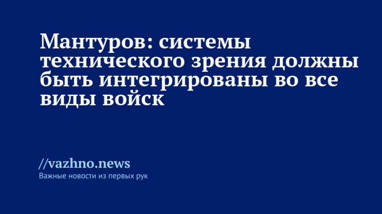 Необходимо развивать и применять системы технического зрения во всех видах и родах войск Вооруженных сил Российской Федерации. Об этом 29 августа заявил первый заместитель председателя правительства России Денис Мантуров на стратегической сессии, прошедшей в военном инновационном технополисе «Эра».