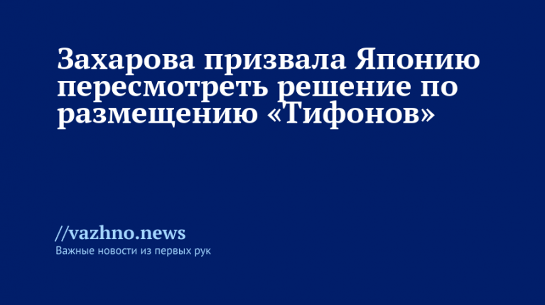 Кроме того, она заявила, что Японию неоднократно предупреждали о недопустимости провокационной военной деятельности вблизи российских границ на Дальнем Востоке и призвали пересмотреть планы по размещению комплекса «Тифон».