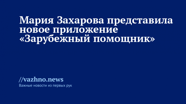 Официальный представитель МИД России Мария Захарова опубликовала на своей странице в Facebook информацию о запуске нового приложения «Зарубежный помощник».