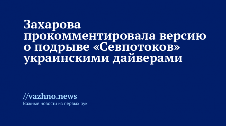 Захарова отреагировала на версию о диверсии украинских дайверов на «Севпотоках»