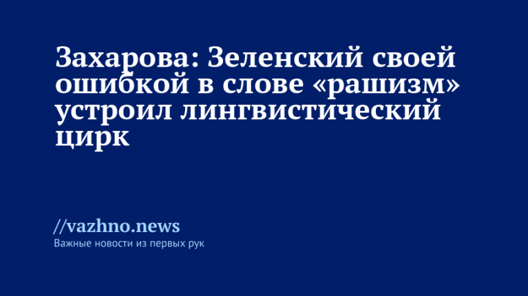 Официальный представитель МИД России Мария Захарова 29 августа обратила внимание на языковую ошибку, допущенную президентом Украины Владимиром Зеленским при использовании в законе «О государственной политике национальной памяти украинского народа» термина «рашизм».