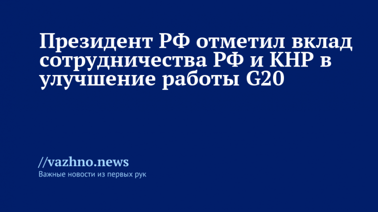 Президент Российской Федерации Владимир Путин подчеркнул значимость сотрудничества между Москвой и Пекином для повышения эффективности работы G20. Об этом он рассказал 29 августа в интервью агентству «Синьхуа».