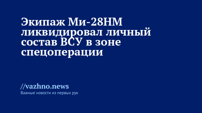 Экипаж армейской авиации на вертолете Ми-28НМ уничтожил живую силу Вооруженных сил Украины (ВСУ), размещенную в лесистой зоне, находящейся в ответственной части группировки войск «Север». Об этом сообщили в Минобороны РФ 30 августа.