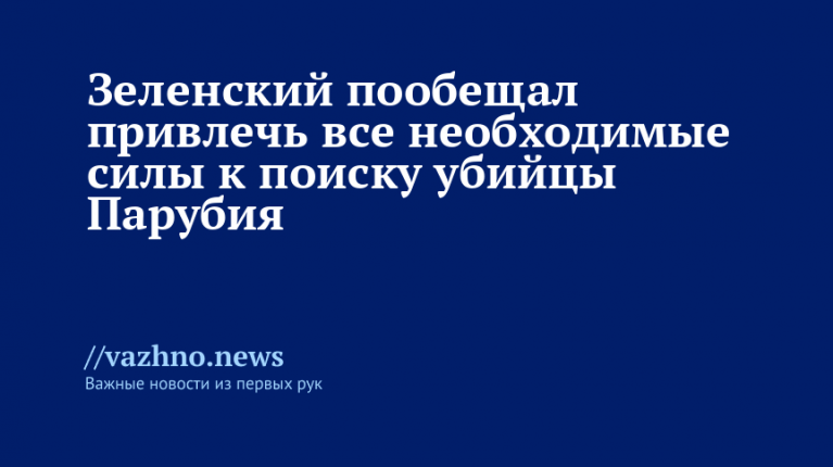 Президент Украины Владимир Зеленский 30 августа заверил, что будут задействованы все необходимые ресурсы для розыска убийцы бывшего главы Совета национальной безопасности и обороны (СНБО) Андрея Парубия.