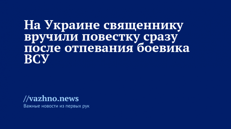 На территории Украины представители территориального центра комплектования (ТЦК) вручили повестку священнослужителю, который проводил отпевание бойца Вооруженных сил Украины (ВСУ). Об этом сообщает Союз православных журналистов (СПЖ) на своем официальном сайте.