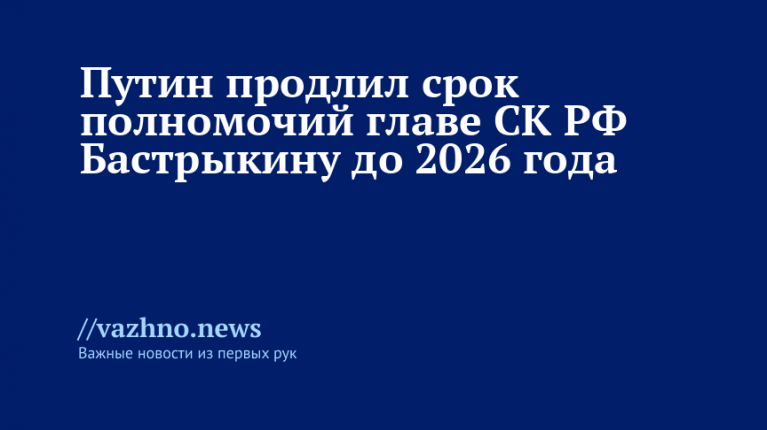В тексте распоряжения говорится: «Продлить срок федеральной государственной службы до 27 августа 2026 года. Председателю Следственного комитета (СК) России Бастрыкину Александру Ивановичу».