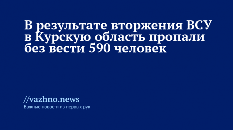 В Курской области после начала вторжения Вооруженных сил Украины (ВСУ) числятся пропавшими без вести 590 человек. Об этом 30 августа сообщил врио губернатора региона Александр Хинштейн.
