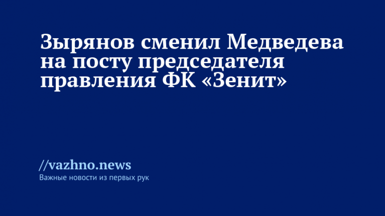 В официальном Telegram-канале клуба было указано: «Константин Зырянов избран председателем правления ФК „Зенит“».