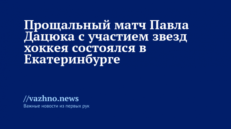 На «УГМК Арене» в Екатеринбурге 30 августа состоялся прощальный матч Павла Дацюка — олимпийского чемпиона, двукратного обладателя Кубка Стэнли и члена «Тройного золотого клуба». Игра завершилась победой команды Дацюка со счетом 13:8.
