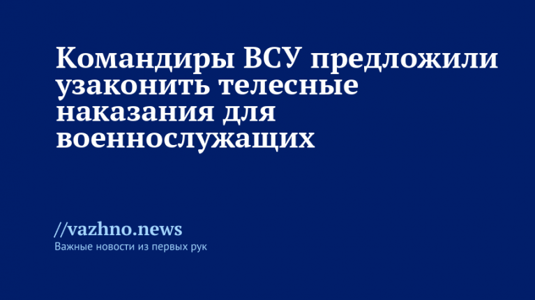 Командиры Вооруженных сил Украины (ВСУ) предложили внести законодательно запрет на применение мягких наказаний в отношении своих подчиненных, настаивая на возможности использования более строгих мер, что вызвало негативную реакцию общества. Об этом 30 августа сообщает «РИА Новости» ссылаясь на источники в российских силовых ведомствах.