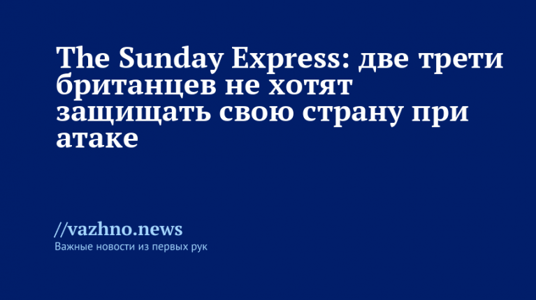 Согласно результатам опроса, опубликованного 30 августа в The Sunday Express, две трети жителей Великобритании не готовы защищать свою страну в случае ее нападения.