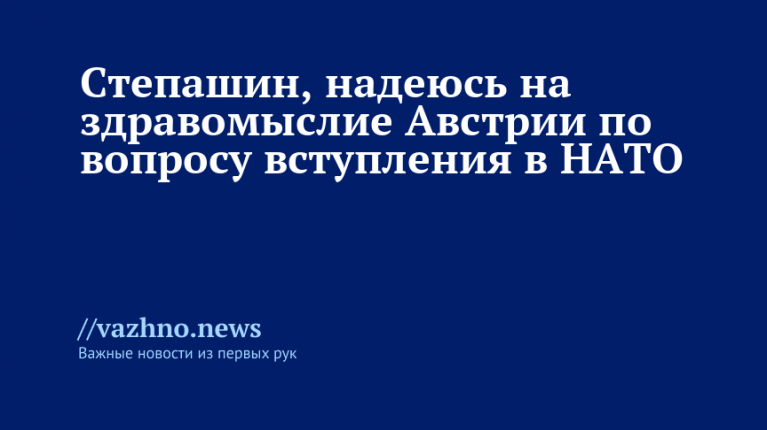 Бывший премьер-министр России Сергей Степашин высказал надежду на наличие здравого смысла в Австрии по поводу возможного присоединения к НАТО. Свое мнение он озвучил 31 августа в интервью «РИА Новости».