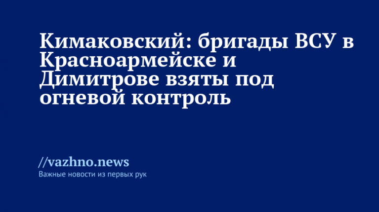 Группировки Вооруженных сил Украины (ВСУ), расположенные в Красноармейске и Димитрове, полностью контролируются российскими войсками с точки зрения огневого воздействия. Об этом 31 августа сообщил советник главы Донецкой Народной Республики (ДНР) Игорь Кимаковский.