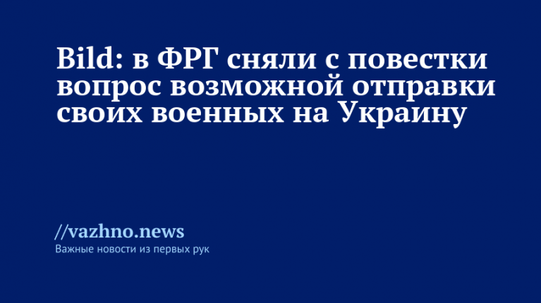Правительство Германии отказалось от идеи отправки своих войск в качестве миротворцев на территорию Украины после завершения конфликта, предпочтение теперь отдается финансовой поддержке Киева. Об этом 31 августа сообщила газета Bild, ссылаясь на информированные источники.