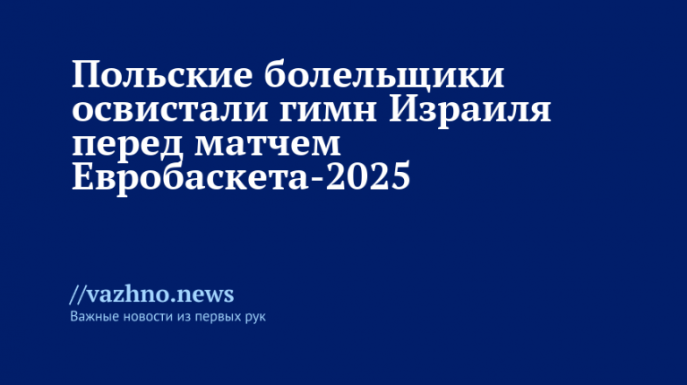 Перед началом матча между сборными Польши и Израиля во втором туре группового этапа чемпионата Европы по баскетболу польские болельщики освистали гимн Израиля. Инцидент был запечатлен на видео, которое 31 августа опубликовал журналист канала TVP Sport Якуб Клышчейко на своей странице в социальной сети X (ранее Twitter).