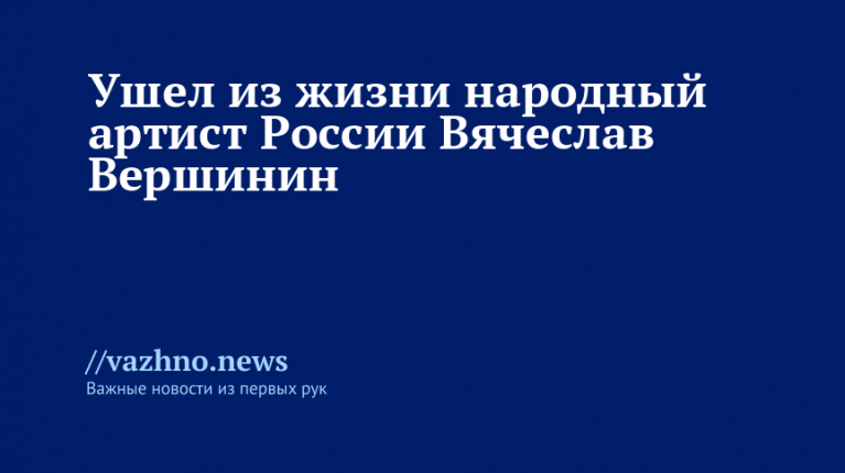 В Северной Осетии скончался народный артист России, заслуженный артист республики Вячеслав Вершинин. Об этом 31 августа заявил глава региона Сергей Меняйло.