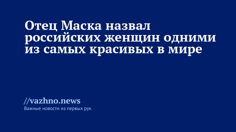 1 сентября отец американского бизнесмена и миллиардера Илона Маска, предприниматель Эррол Маск, охарактеризовал российских женщин как одних из самых привлекательных в мире.