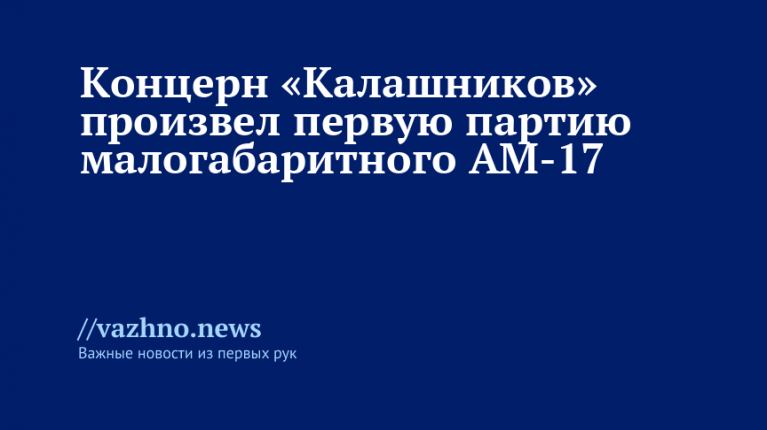 Концерн «Калашников» анонсировал выпуск первой опытной партии компактного автомата АМ-17, предназначенного под патрон 5,45 мм. Об этом 1 сентября сообщили в официальном Telegram-канале предприятия.