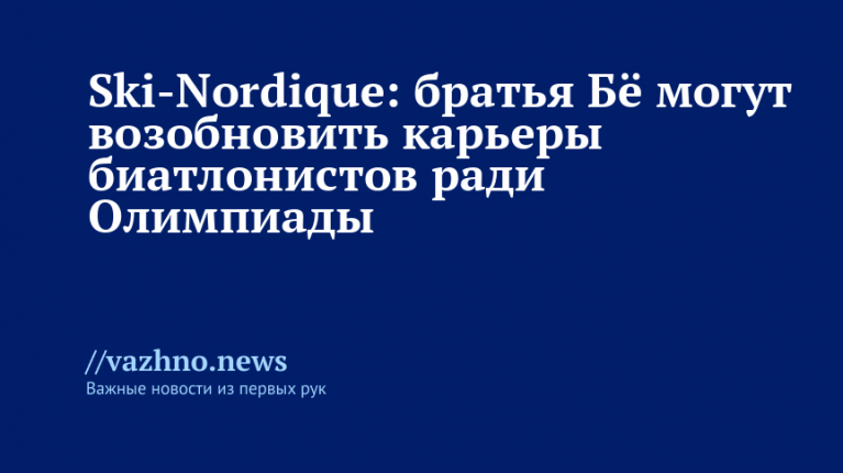 Норвежский биатлонист Йоханнес Бё предположил, что он вместе с братом Тарьей могут вернуться к спортивной карьере, чтобы выступить на Олимпийских играх 2026 года, которые пройдут в Италии. Об этом спортсмен заявил 31 августа.