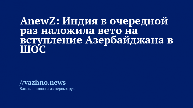 Индия вновь применила вето против вступления Азербайджана в Шанхайскую организацию сотрудничества (ШОС). Об этом 1 сентября сообщил ресурс AnewZ, ссылаясь на информированные источники.
