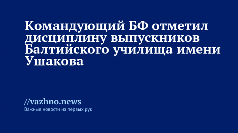 В день знаний командующий Балтийским флотом (БФ) Сергей Липилин высоко оценил превосходную подготовку и дисциплину солдат и выпускников Балтийского высшего военно-морского училища имени адмирала Ф.Ф. Ушакова, расположенного в Калининграде. Пресс-служба БФ опубликовала видеокадры с торжественного мероприятия, прошедшего 1 сентября.