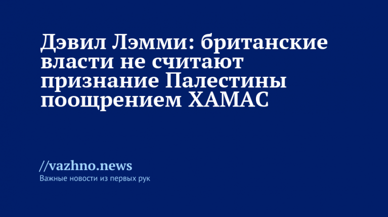 Министр иностранных дел Великобритании Дэвид Лэмми подтвердил, что страна продолжает планировать признание Палестины как государства в сентябре, поскольку Израиль не выполнил требования британского правительства по прекращению конфликта в секторе Газа. Эта информация была опубликована 1 сентября в издании The Guardian.