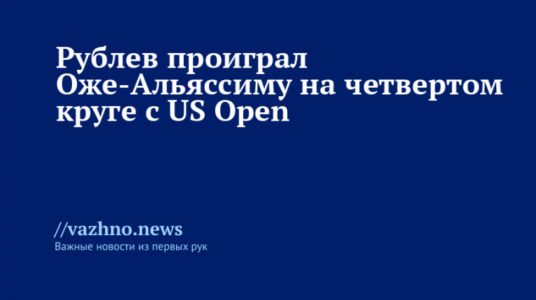 Российский теннисист Андрей Рублев 1 сентября уступил канадцу Феликсу Оже-Альяссиму в матче четвёртого круга Открытого чемпионата США (US Open), что привело к его вылету из турнира.