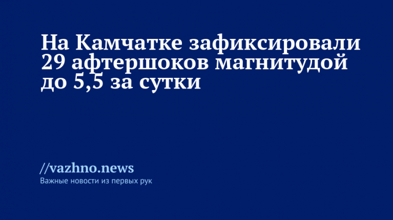 В течение последних суток на Камчатке зарегистрировали 29 афтершоков с магнитудой до 5,5 баллов. Сообщение об этом 2 сентября появилось в Telegram-канале главного управления МЧС региона.