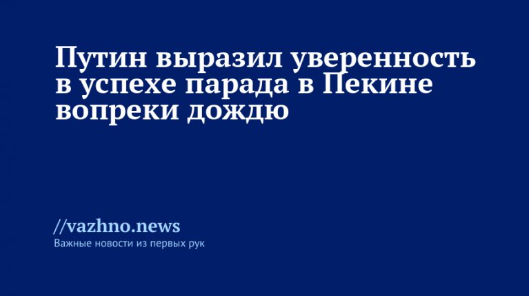 2 сентября президент России Владимир Путин выразил уверенность в том, что парад, посвященный 80-летию Победы над Японией и завершению Второй мировой войны, пройдет на высшем уровне, несмотря на возможный дождь.