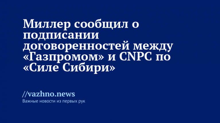 Глава правления «Газпрома» Алексей Миллер объявил о заключении соглашений с Китайской национальной нефтегазовой корпорацией (CNPC / КННК), предусматривающих увеличение объема поставок газа посредством трубопровода «Сила Сибири» с 38 до 44 млрд кубометров в год.