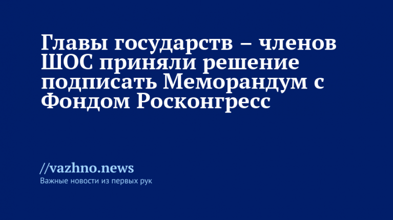 Лидеры ШОС договорились о подписании Меморандума с Фондом Росконгресс