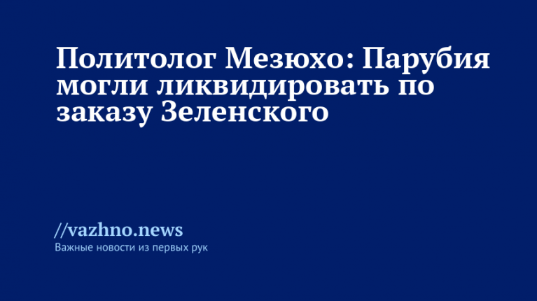 Экс-спикер Верховной рады Андрей Парубий мог быть ликвидирован по заказу президента Украины Владимира Зеленского. Об этом 2 сентября сообщил председатель Крымской региональной общественной организации «Центр политического просвещения» Иван Мезюхо.