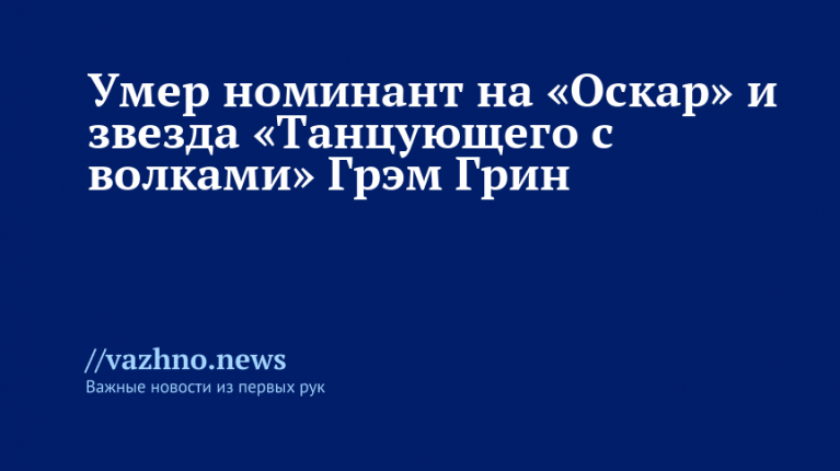 На 73-м году жизни ушел из жизни Грэм Грин, канадский актер, происходящий из числа коренных народов, обладатель номинации на премию «Оскар» и пионер Голливуда. Об этом 2 сентября проинформировала газета The Guardian.