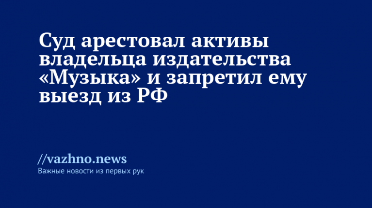 Помимо этого, суд запретил покидать страну и ближайшим родственникам владельца издательства «Музыка», поскольку они выступают ответчиками по делу. Известно, что судебное заседание назначено на 11 сентября, сообщает «Газета.Ru».