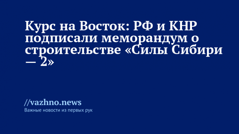 «Сила Сибири — 2»: меморандум подписан Россией и КитаемВо вторник, 2 сентября, в Китае состоялась встреча лидеров Российской Федерации, Китая и Монголии, в ходе которой был подписан меморандум, нацеленный на строительство газопровода «Сила Сибири — 2» и транзитного газопровода «Союз Восток». Об этом журналистам рассказал Алексей Миллер.