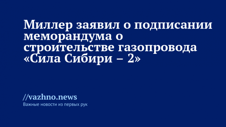Что сообщил Миллер• Алексей Миллер, председатель правления «Газпрома», рассказал о значительном прорыве в реализации проекта газопровода «Сила Сибири – 2», который состоялся по итогам переговоров в Китае между президентом России Владимиром Путиным, председателем КНР Си Цзиньпином и президентом Монголии Ухнаагийном Хурэлсуухом. Был подписан юридически обязательный меморандум на строительство газопровода вместе с транзитным участком через монгольскую территорию «Союз – Восток». Как отметил Миллер, новая магистраль позволит поставлять из России в Китай до 50 млрд куб. м природного газа, а поставки будут совершаться в течение 30 лет.