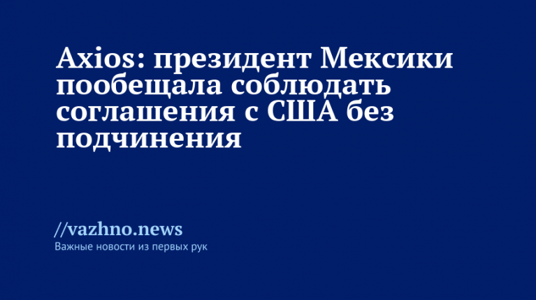 «Президент Мексики Клаудия Шейнбаум в понедельник выступила с жестким предупреждением администрации [президента США Дональда] Трампа, отметив, что Мексика готова к договоренностям в сфере безопасности, иммиграции и борьбы с картелями, но «без подчинения», — приводит ее слова портал Axios.